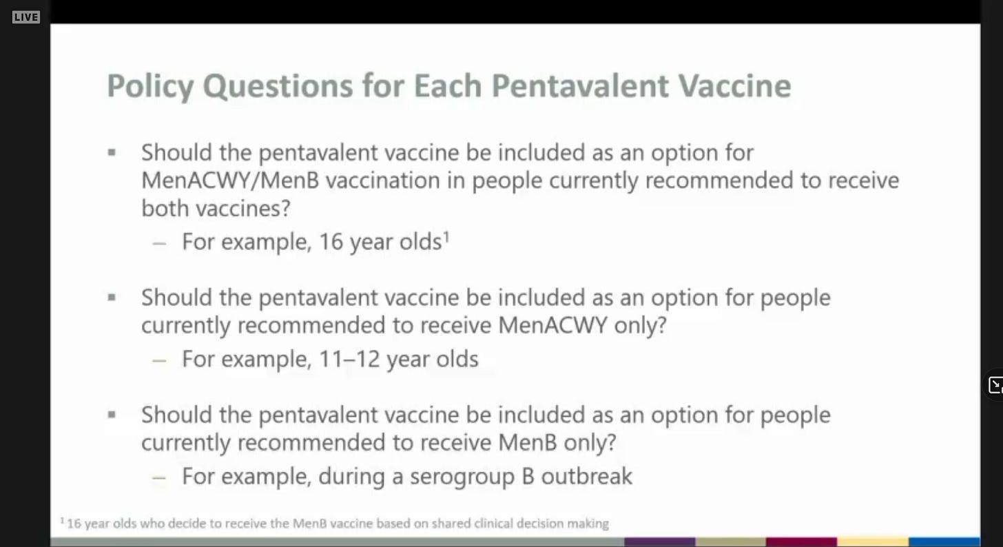 Today's CDC LIVE Blog Summary of Meningococcal Vaccine Speakers