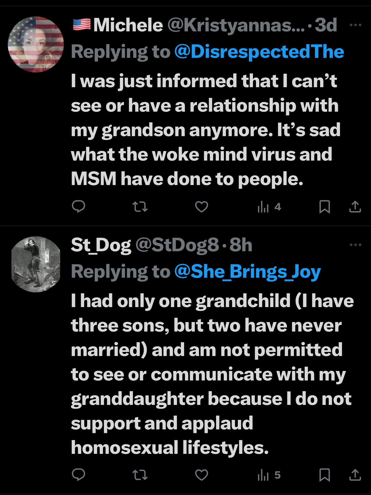 Thank you for acknowledging this very real and sad phenomenon happening. I am one of those grandparents. My husband and I were told we are not allowed to visit our first and only grandchild, if we did not get the jab. We did not get the jab and never will. After a year and a half he called to tell us we were abusive and were never to be around his son alone and allowed a once a year supervised visitation. They are now expecting their second child. They do nit include us in the details of the upcoming birth. I have relatives reporting the details to me.