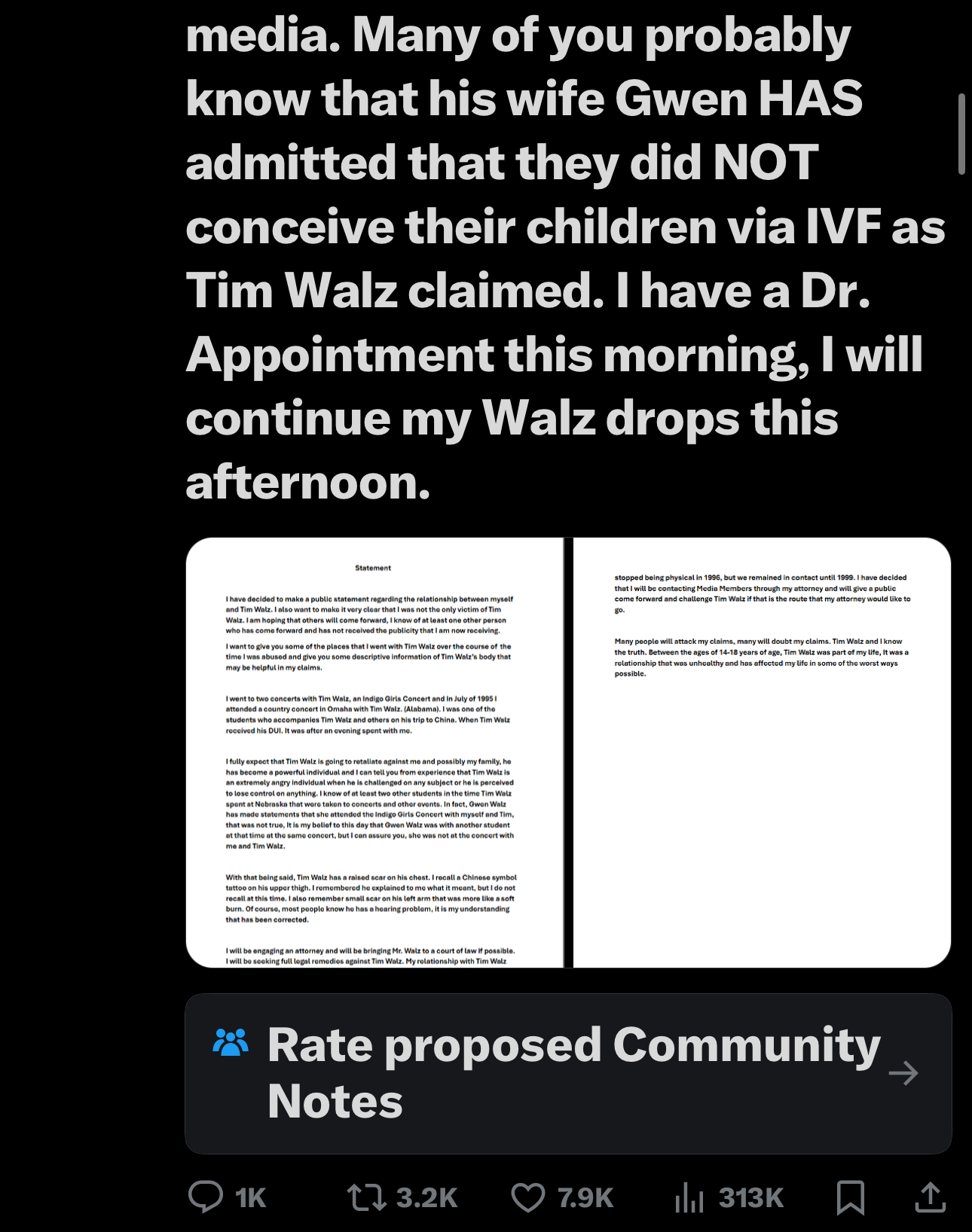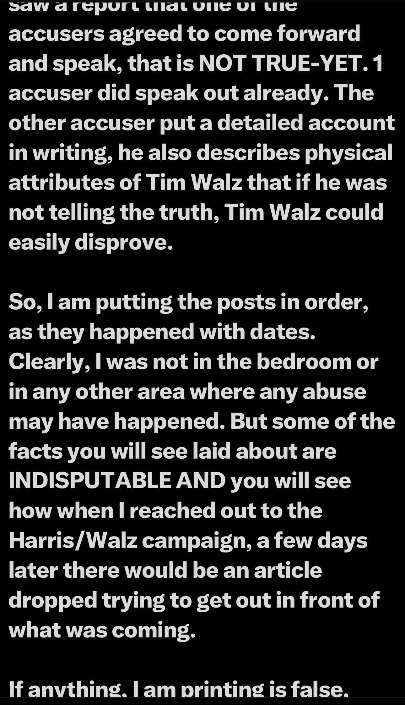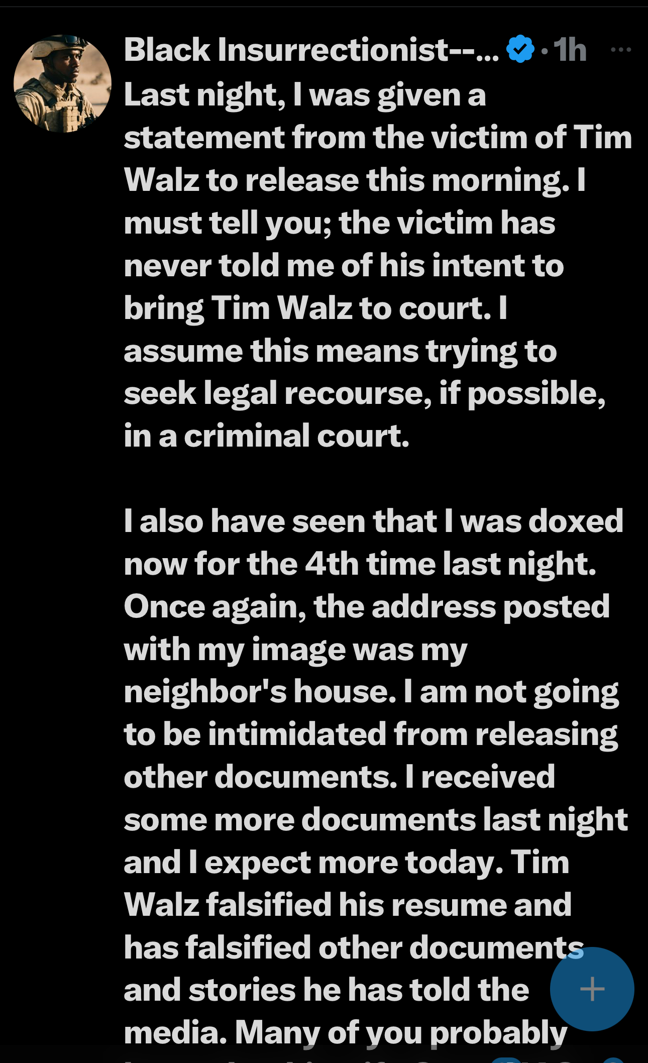 Walz' personality and demeanor signal this likely aberrant behavior. This detailed personal disclosure confirms the suspicions of many. I look forward to this courageous man coming forward with a public accusation and lawsuit asap.