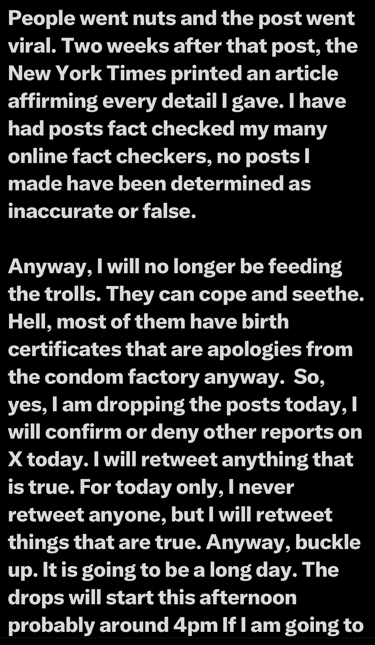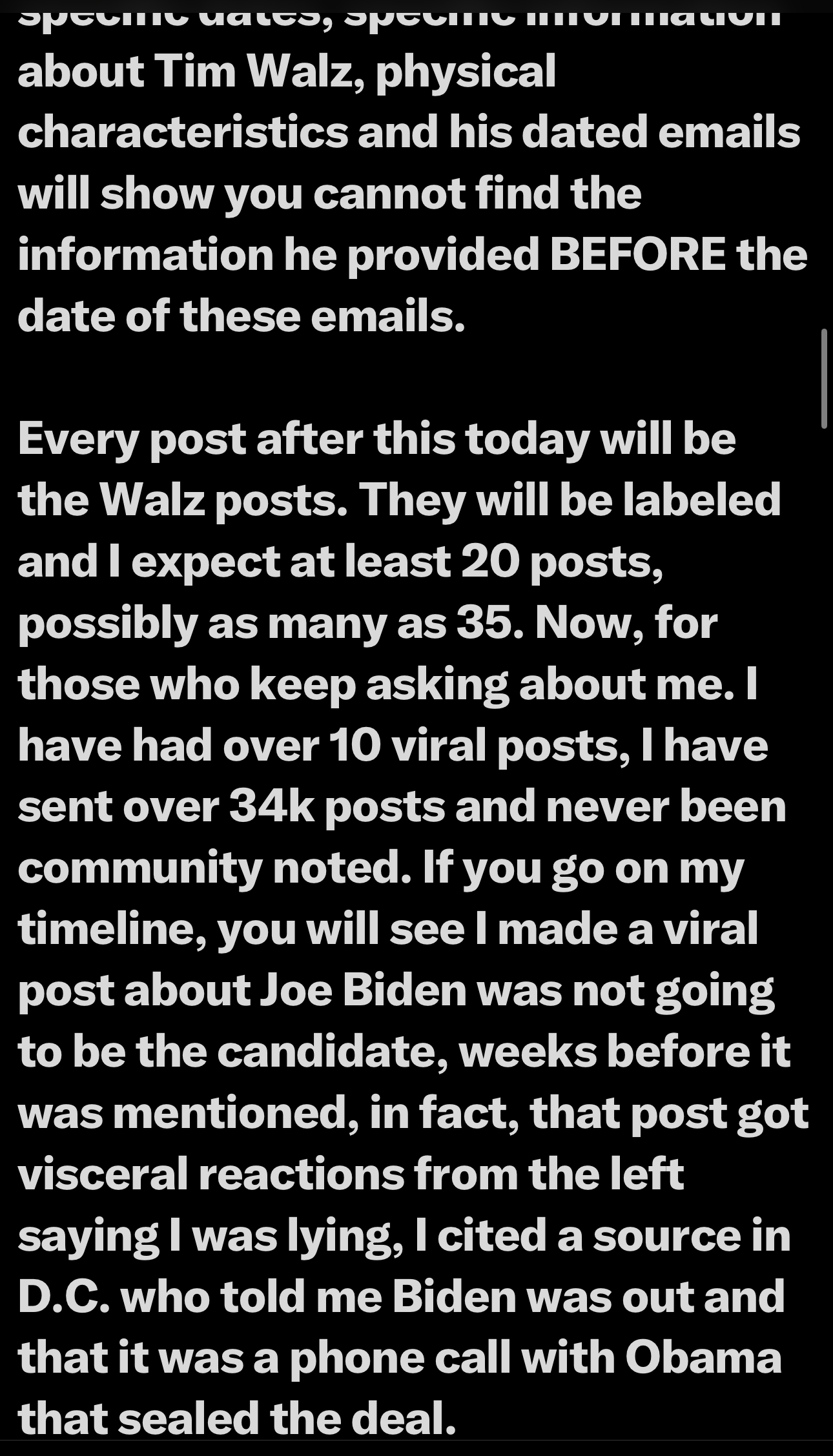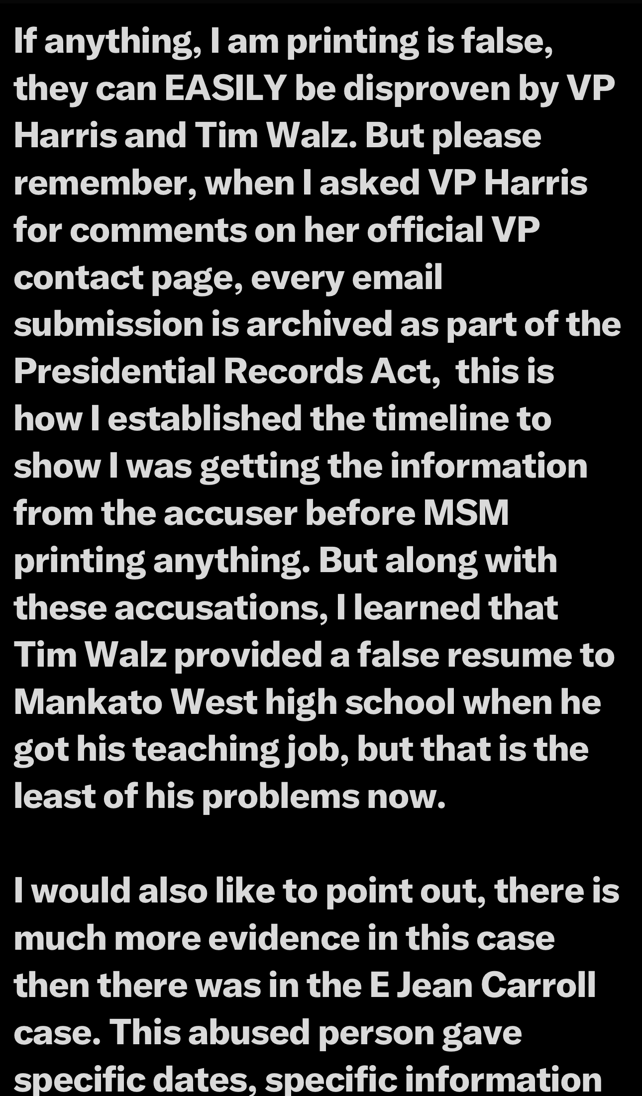 Expect a Dem push for early voting this week, so that by the time this news gets out, voters for Harris-Walz can't change their minds.