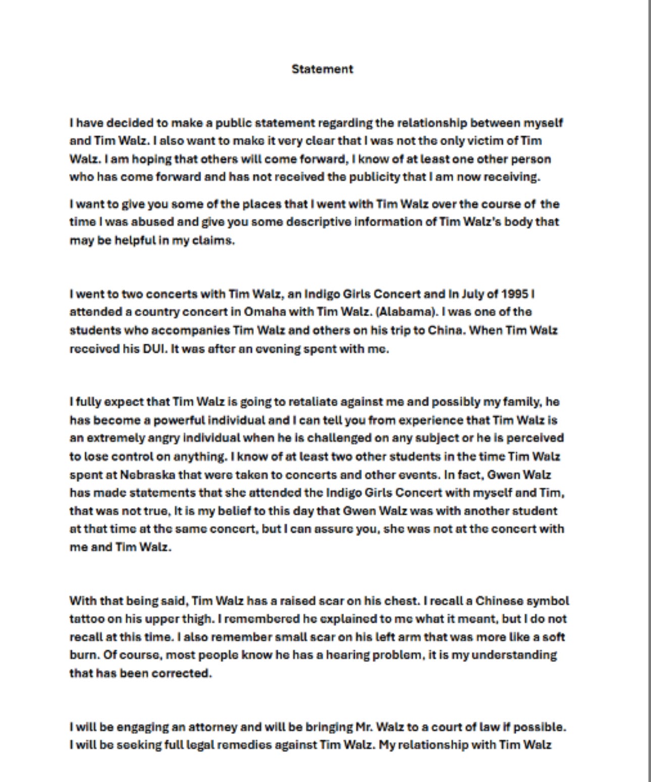 Foreign Exchange Student Goes Public: Accuses Tim Walz of Grooming and Sexual Assault, Threatening Deportation