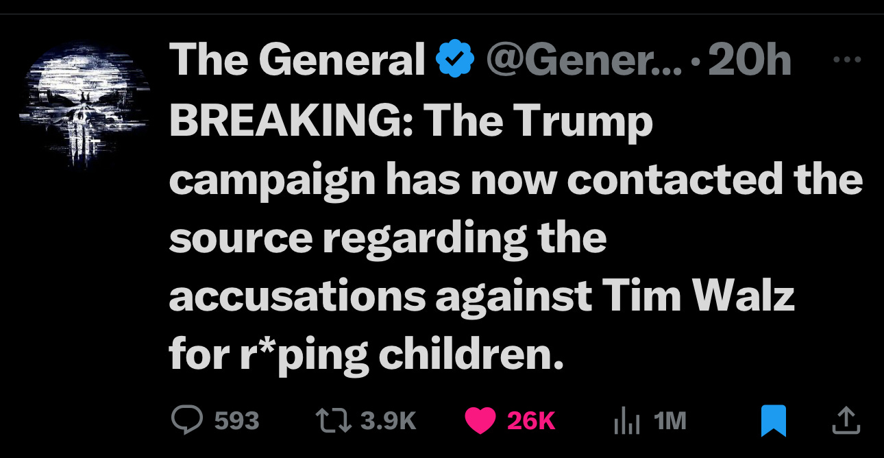 It is reported that the Trump campaign has contacted the source regarding accusations against Tim Walz.