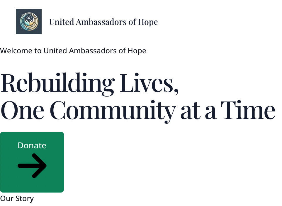 United Ambassadors of Hope is committed to rebuilding lives, one community at a time, by providing relief, restoration, and support in the wake of natural disasters. We assess immediate needs, form local partnerships, and deliver essential resources to affected areas. By offering shelter, nourishment, and assistance to volunteers on the frontlines, we empower those serving in disaster recovery efforts. Together, through compassion and collaboration, we unite to bring hope and resilience to communities in crisis.