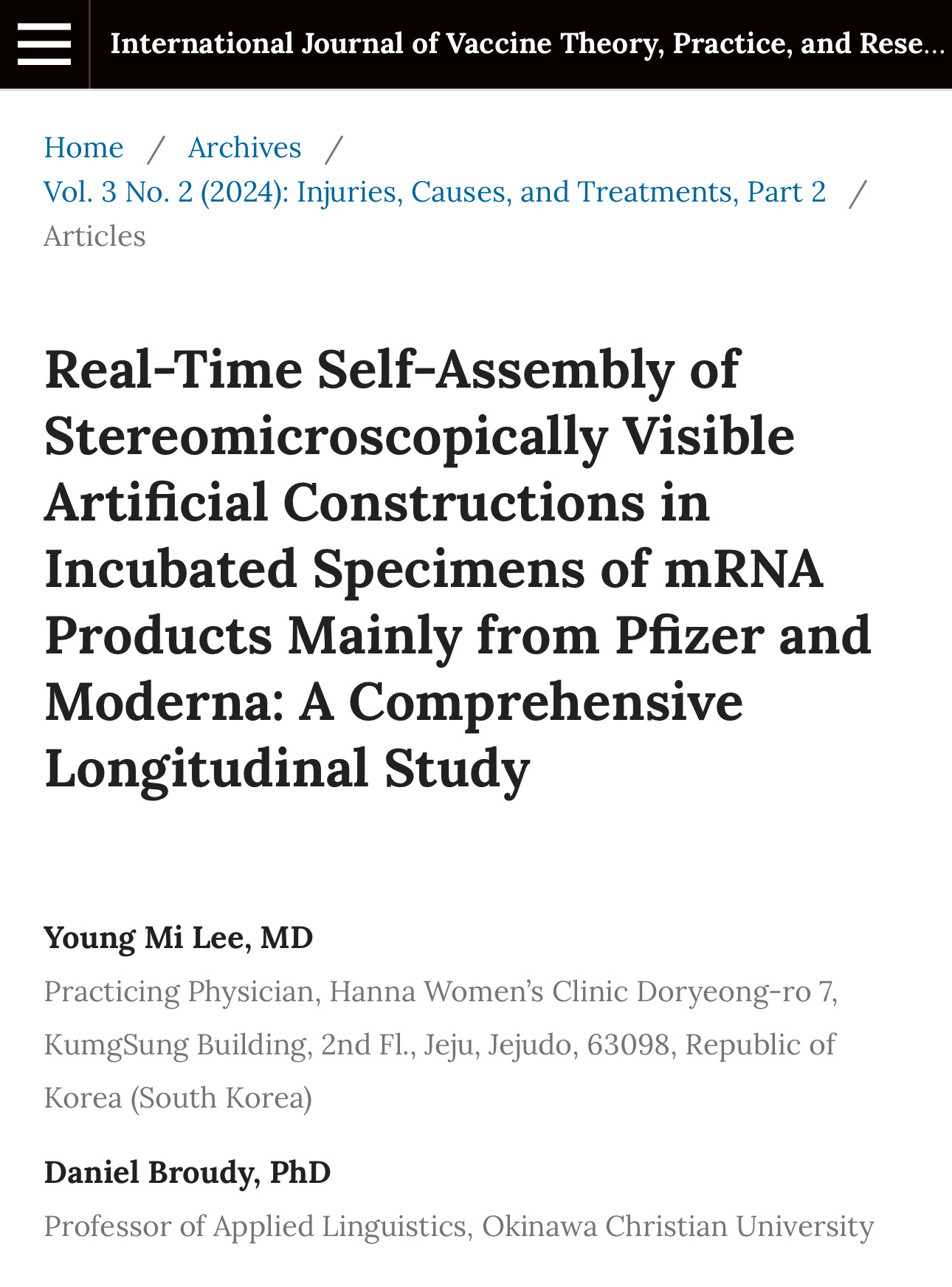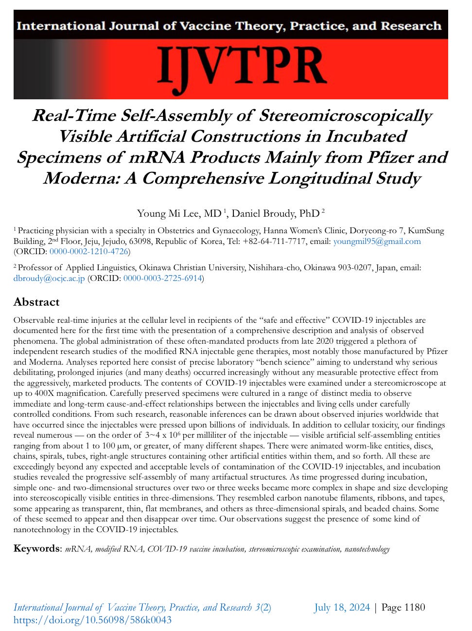 As the Dr. Young Mi Lee and Dr. Daniel Broudy from Okinawa Christian University explain, these worm-like entities are responsible for causing clots inside millions of human bodies around the world since the mRNA roll out.
