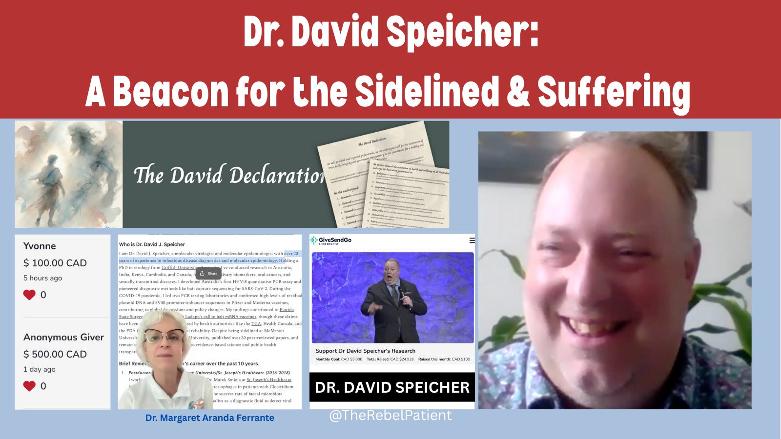 Dr. Margaret: Hi, this is Dr. Margaret Aranda here with Dr. David Speaker. He is joining us from Canada. He's had a winding road of a path to get to where he is today, on the same page with the medical freedom fighters through no plan of his own and from God's plan. Right, David?