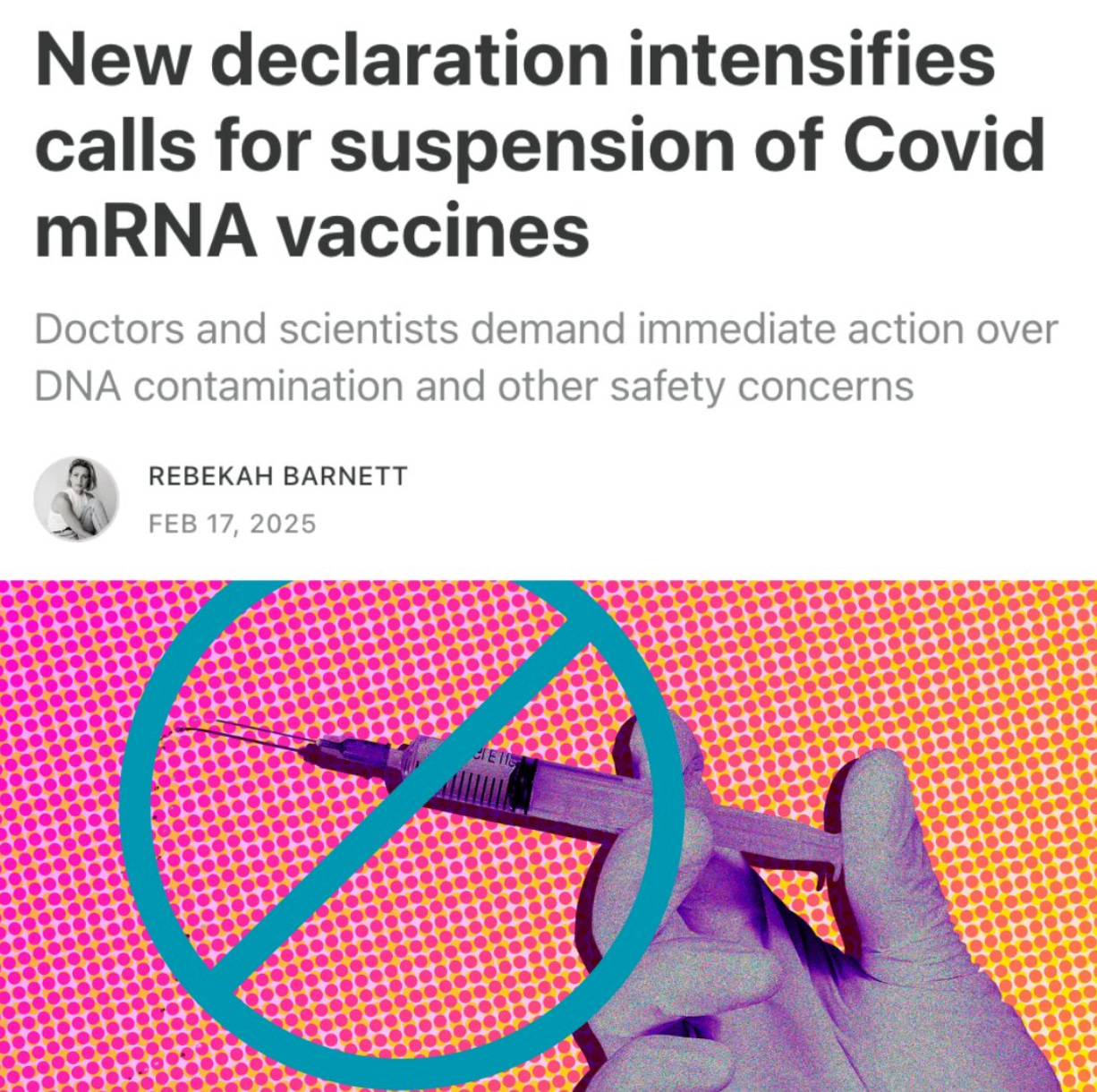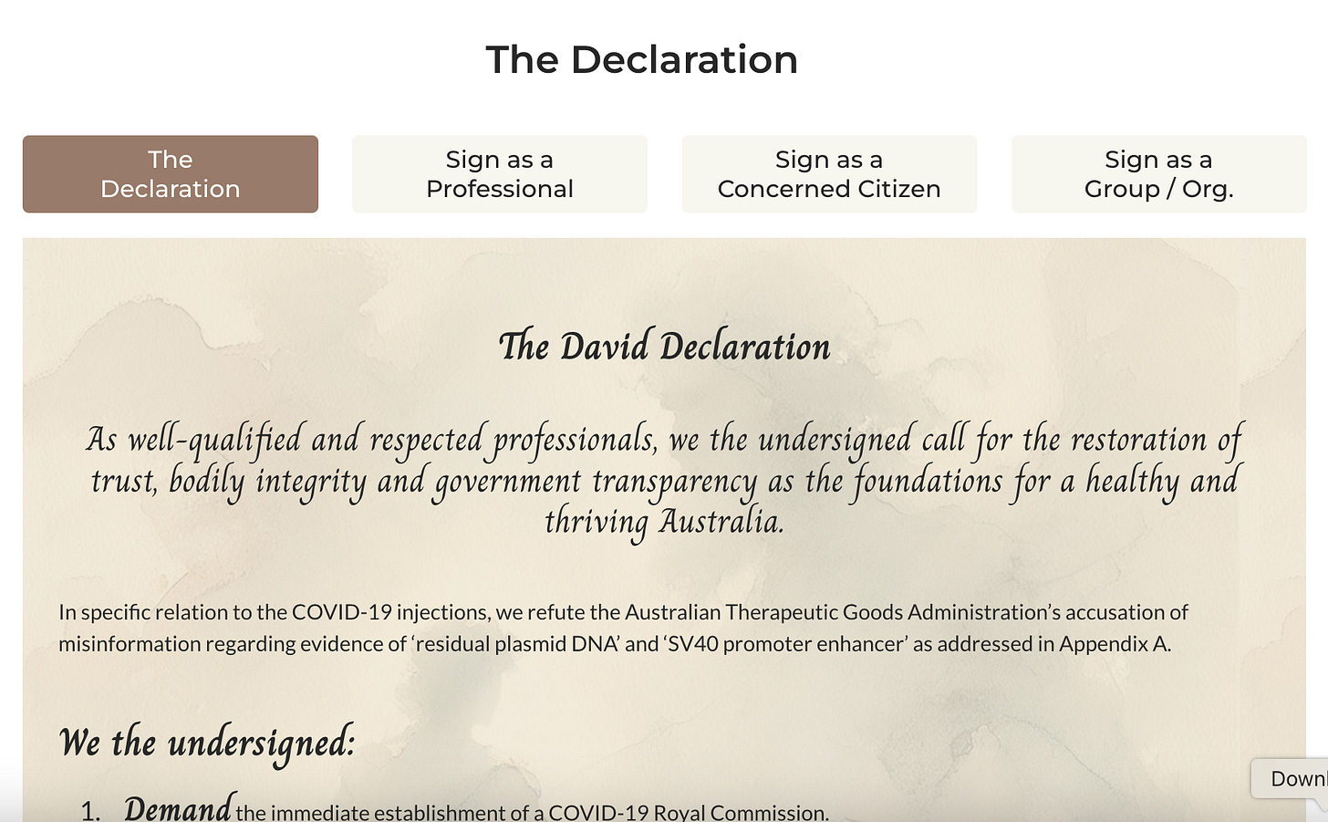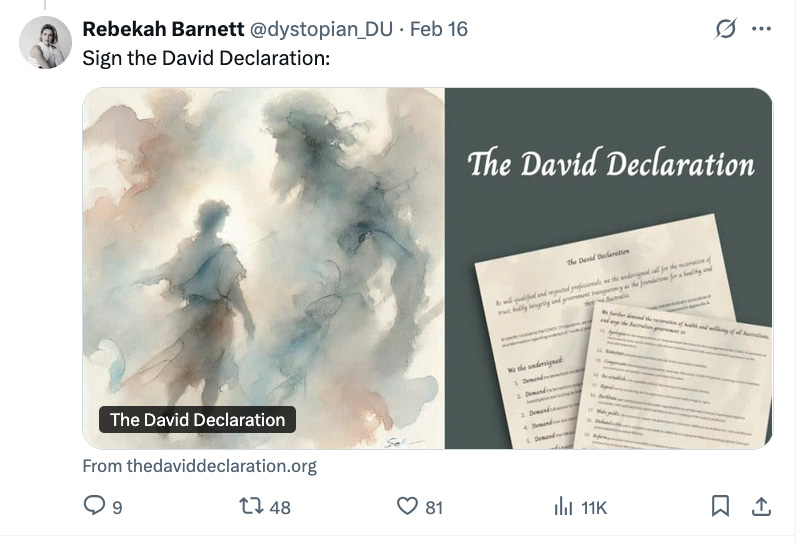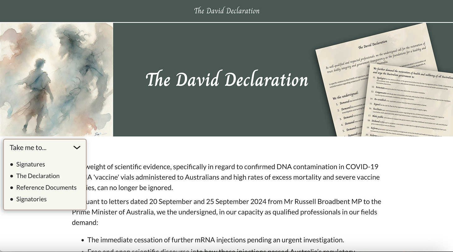 My Note: The David Declaration calls for an end to the Covid mRNA vaxxes.