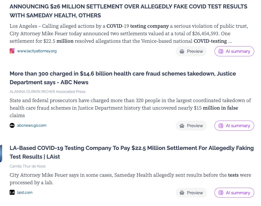 Also, I'll just throw in there, I saw a tweet this morning, I'm not sure if you saw it, there was somebody who got busted for, I don't know, $315 million false PCR testing, like they were reporting results that probably they just flipped a coin.