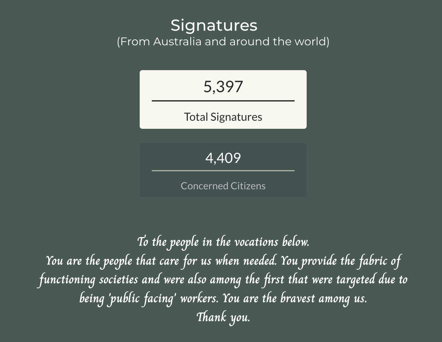 So far, there's 5,300 signatures and more than 4,000 concerned citizens. The world can sign this!