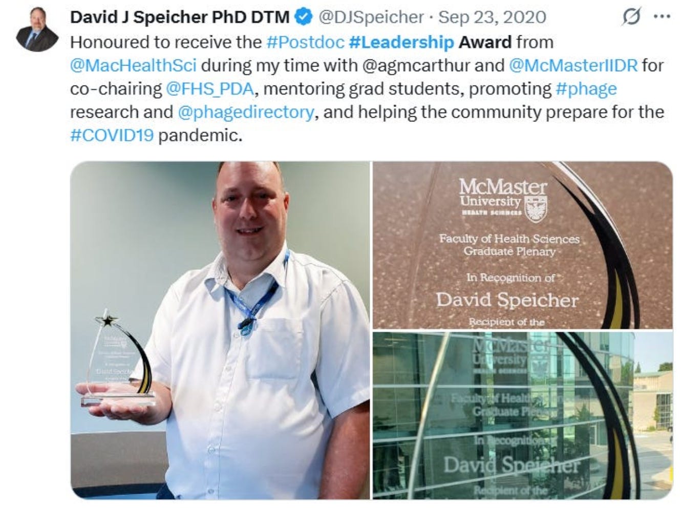 On March 17, 2020, Dr. Speicher was sidelined and placed under investigation at McMaster University. He taught at Redeemer University and has published over 30 peer-reviewed papers.