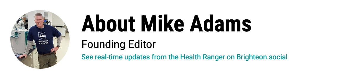 Mike Adams (aka the "Health Ranger") is the founding editor of NaturalNews.com, a best selling author (#1 best selling science book on Amazon.com called "Food Forensics"), an environmental scientist, a patent holder for a cesium radioactive isotope elimination invention, a multiple award winner for outstanding journalism, a science news publisher and influential commentator on topics ranging from science and medicine to culture and politics.