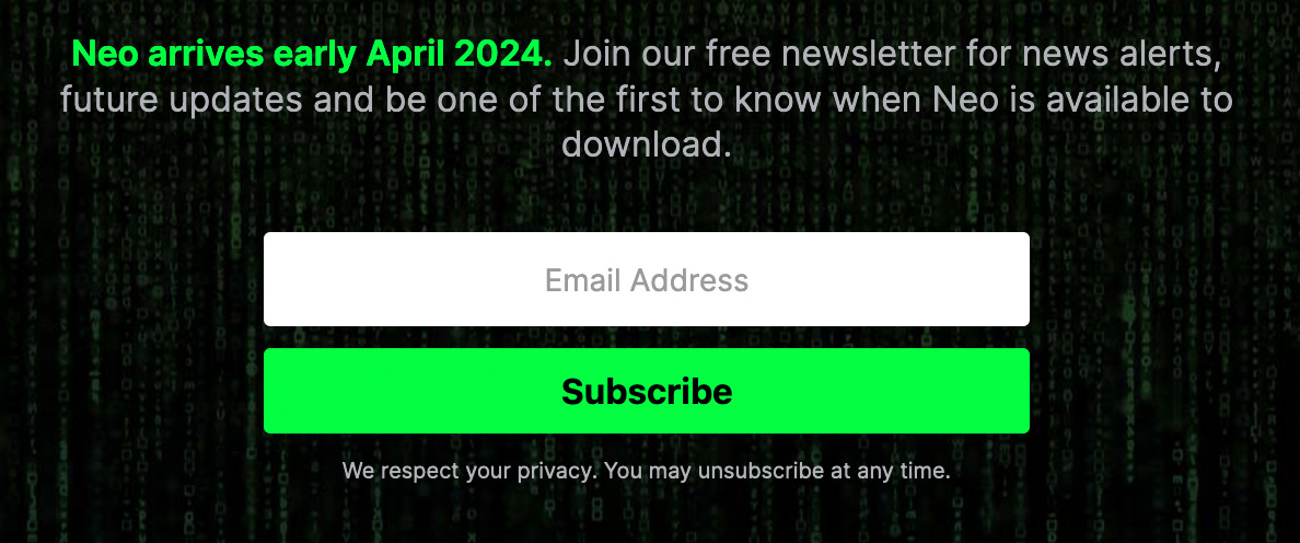 “Neo” is projected to be available to download for free in early April 2024.