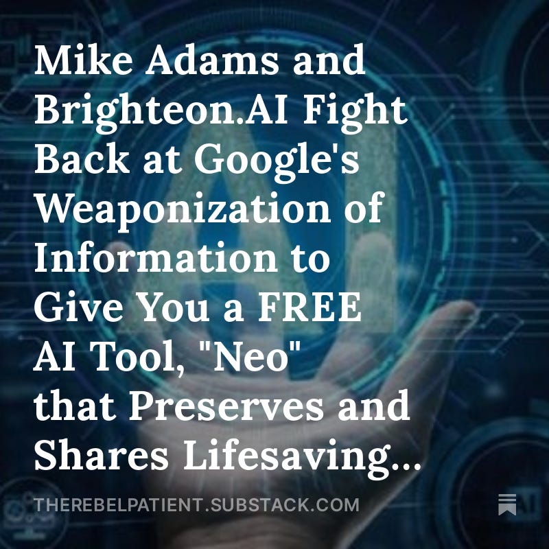 Mike Adams and Brighteon.AI Fight Back at Google's Weaponization of Information to Give You a FREE AI Tool, "Neo" that Preserves and Shares Lifesaving Knowledge that Is Targeted for Extermination