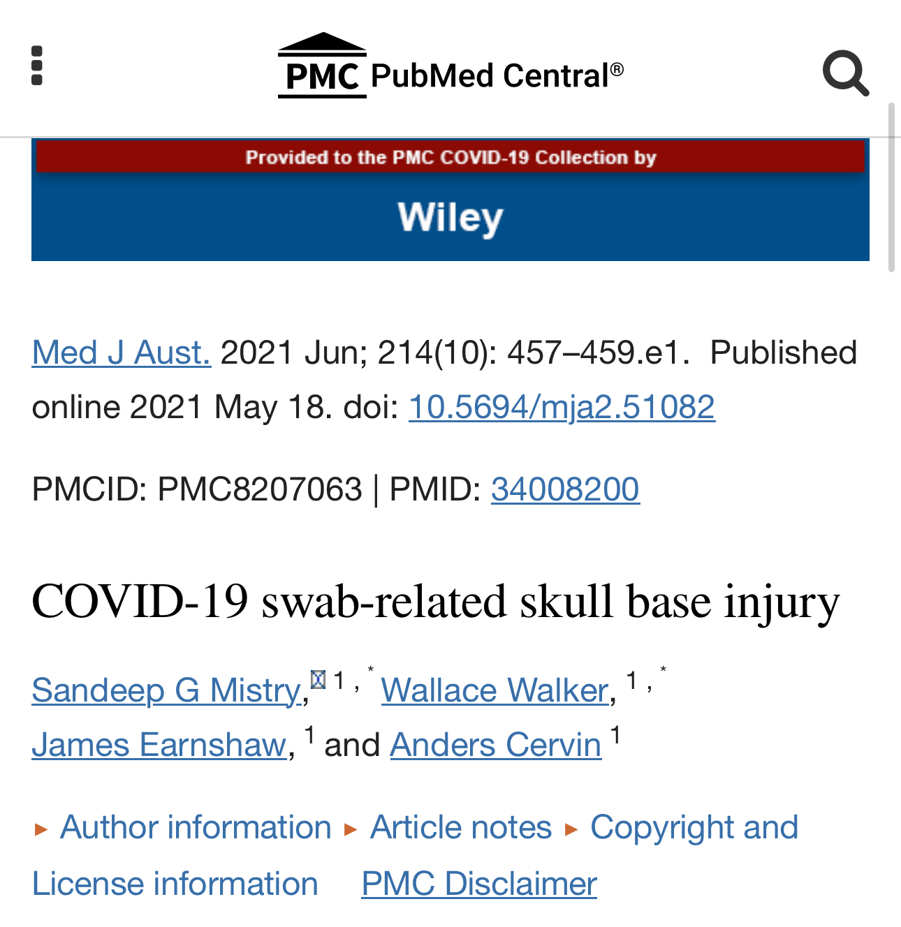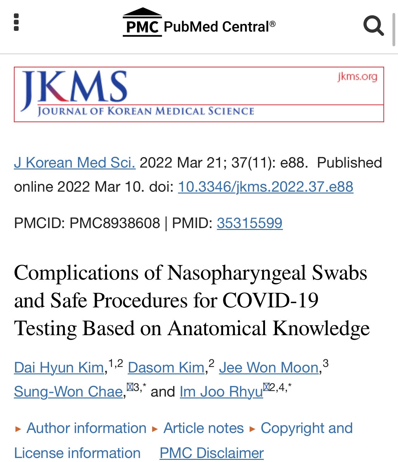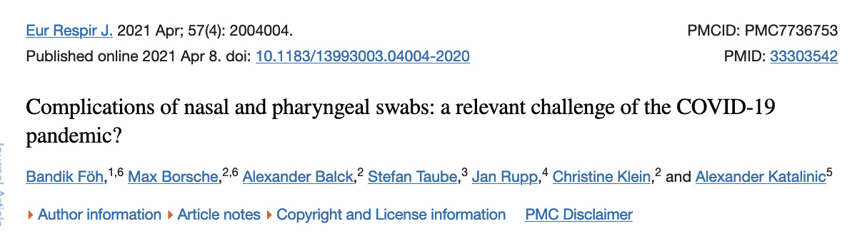 In conclusion, patients and clinicians should be aware of rare but possible complications and associated high-risk factors. The suggested procedural pearls enable more comfortable and safe nasopharyngeal COVID-19 testing for both clinicians and patients.