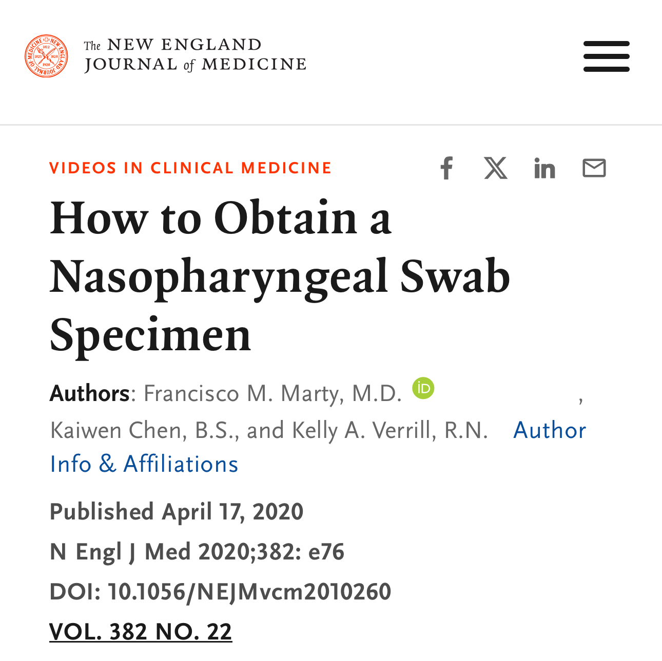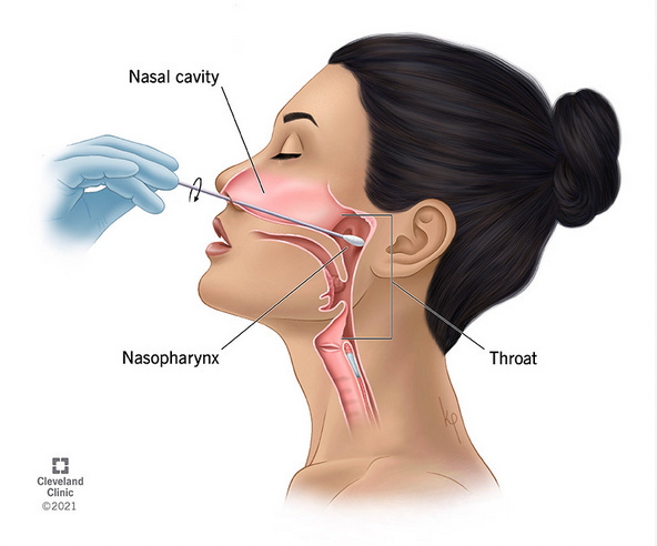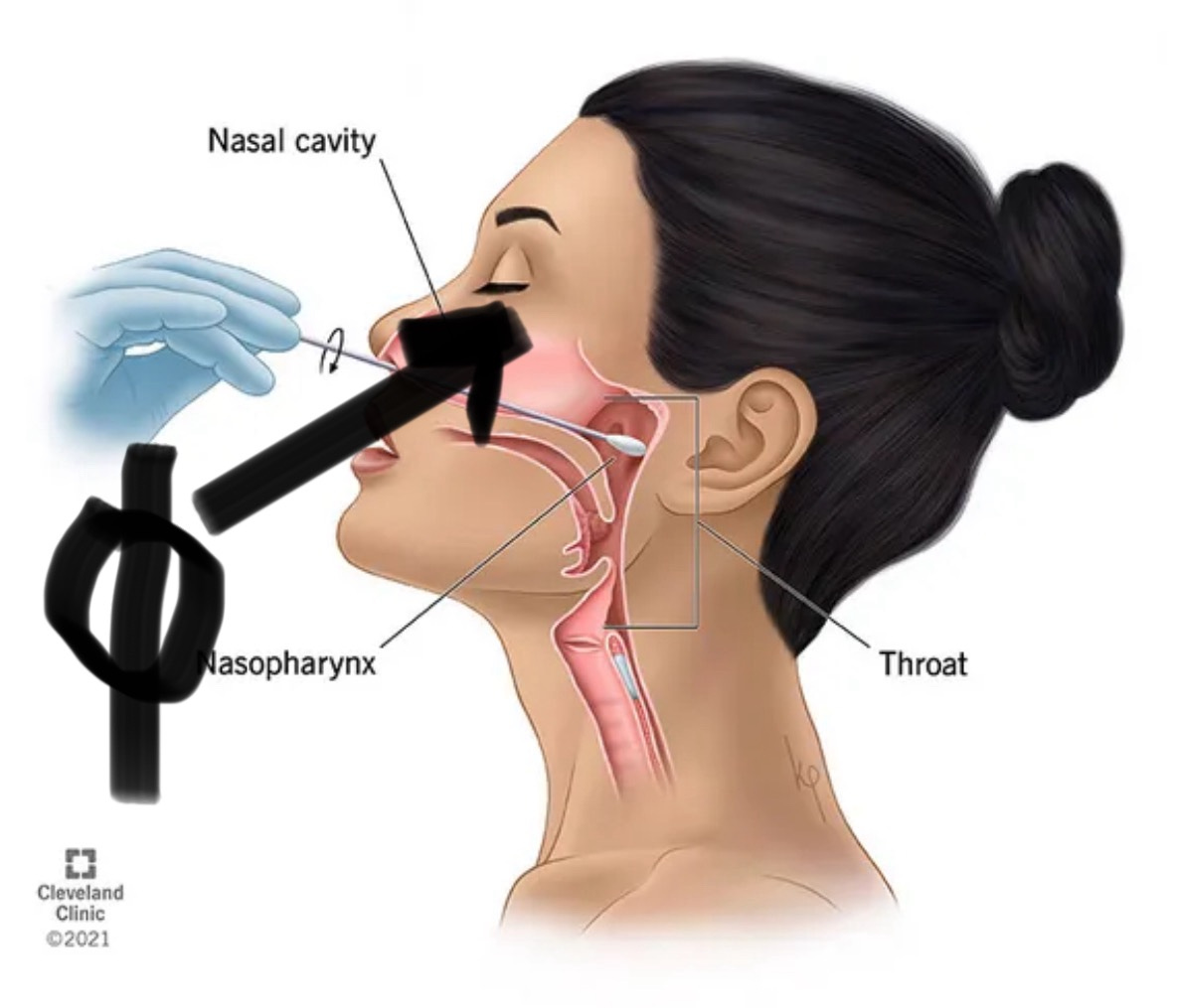 BE AWARE that no one is supposed to LOOK UP to punch your nose with the nasal swab. They’re supposed to take the sample from the upper back nose, not toward the brain! See the correct procedure below:
