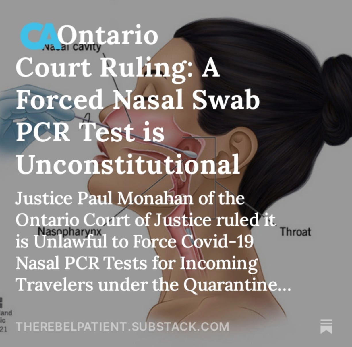 🇨🇦 Ontario Court Ruling: A Forced Nasal Swab PCR Test is Unconstitutional