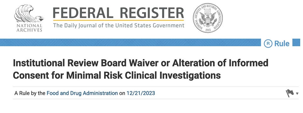 Addendum June 2, 2025 at 1420 PST: On my medical directives, I am adding in a section, “No participation in any experimentation, even if it is "minimal risk”. See my Article HERE