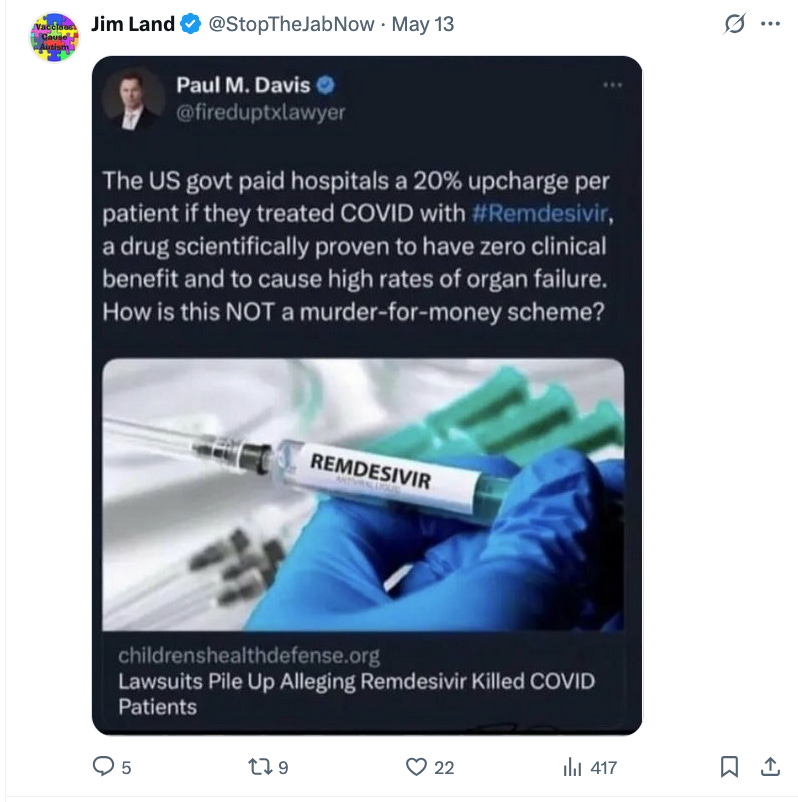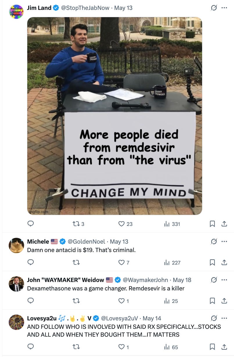 Every time I think of Remdesivir, I think of Danielle Alvarez and how they tried to kill her with 10 DOSES of Remdesivir.