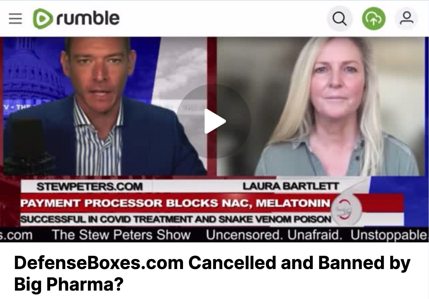 Link: https://rumble.com/v1a36ac-defenseboxes.com-cancelled-and-banned-by-big-pharma.html