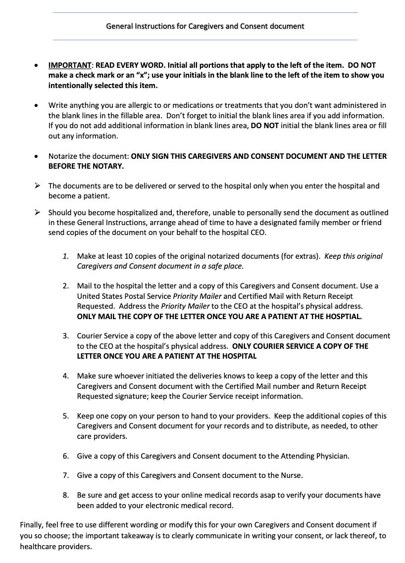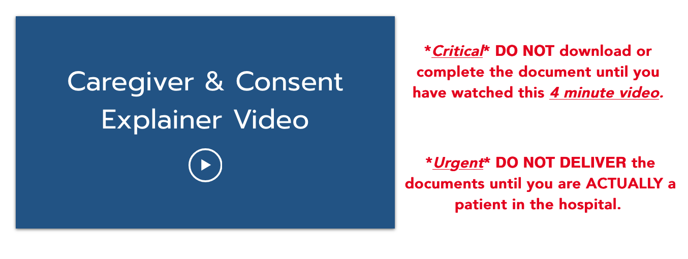 Going to the Hospital - The TIMING is important. ONLY use this when you are CURRENTLY in the hospital. Do not take these documents to your local hospital while you’re perfectly well and at home.