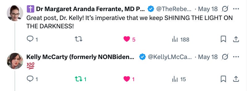 It was November 2020 when Laura helped “rescue” her first hospital patient from almost certain death. Laura decided to help. This case was that of a man who had a UTI — yet they tested him for Covid, despite not having any symptoms for it. The patient’s brother called Laura and she got him out with his hospital gown still on, Foley catheter still in place! She got oxygen delivered to his house! And she called him every 2 hours to check on him.