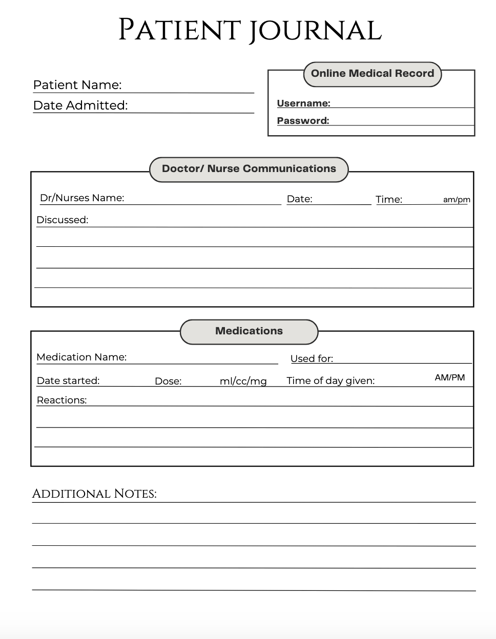 PATIENT JOURNAL: TRACK YOUR HOSPITALIZATION
