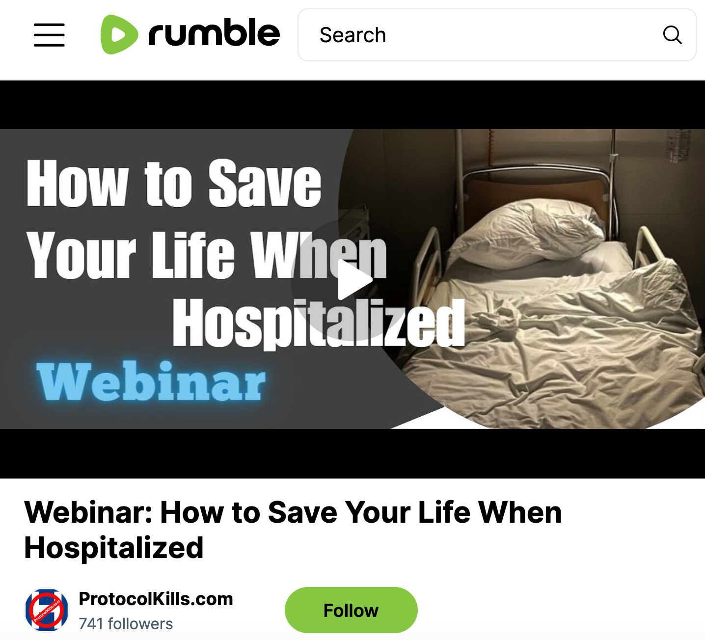 Free Webinar: This crucial 45-minute video is here: https://rumble.com/v3vjk8j-webinar-how-to-save-your-life-when-hospitalized.html