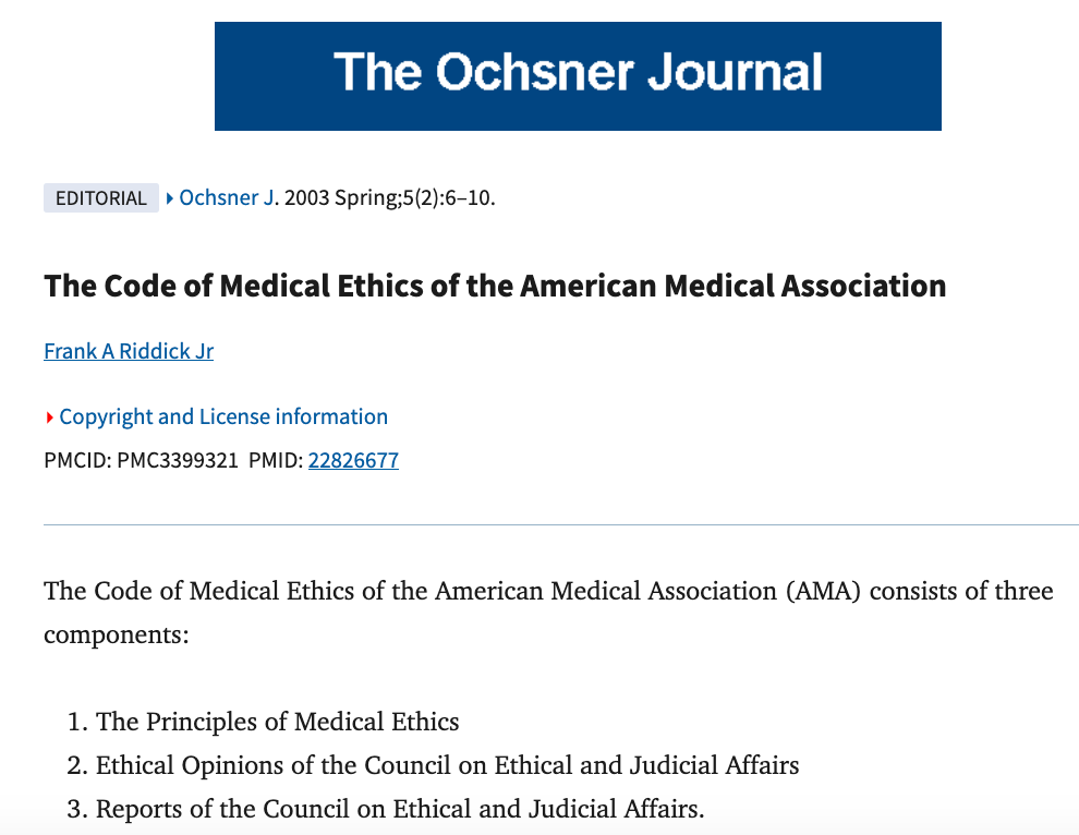 This includes the AMA Code of Ethics Opinion 2.1.1