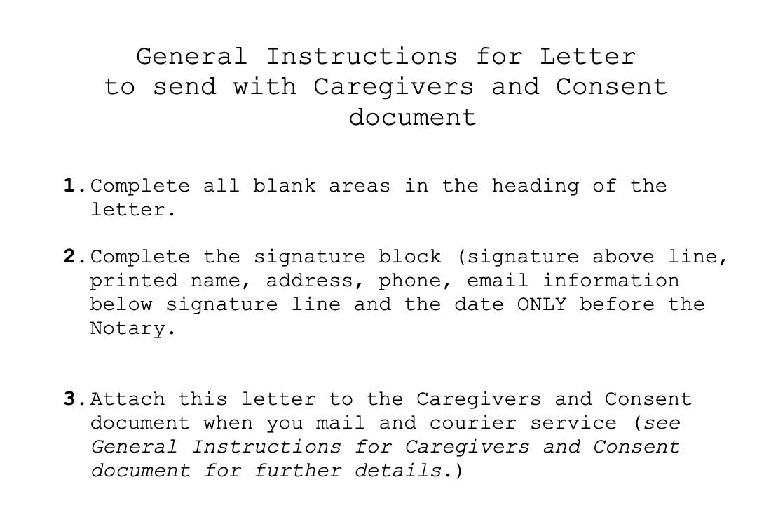 2. General Instructions for Letter to Send with Caregivers and Consent Form
