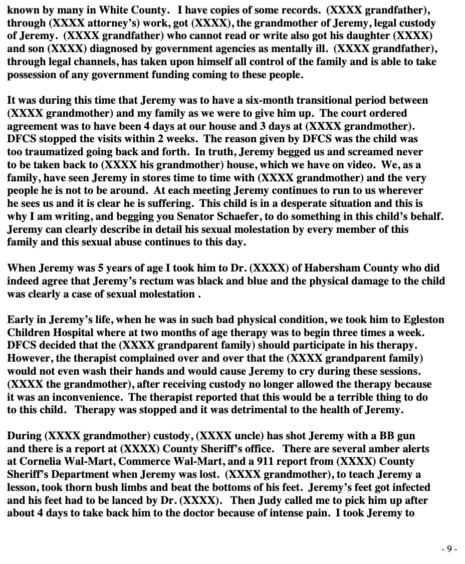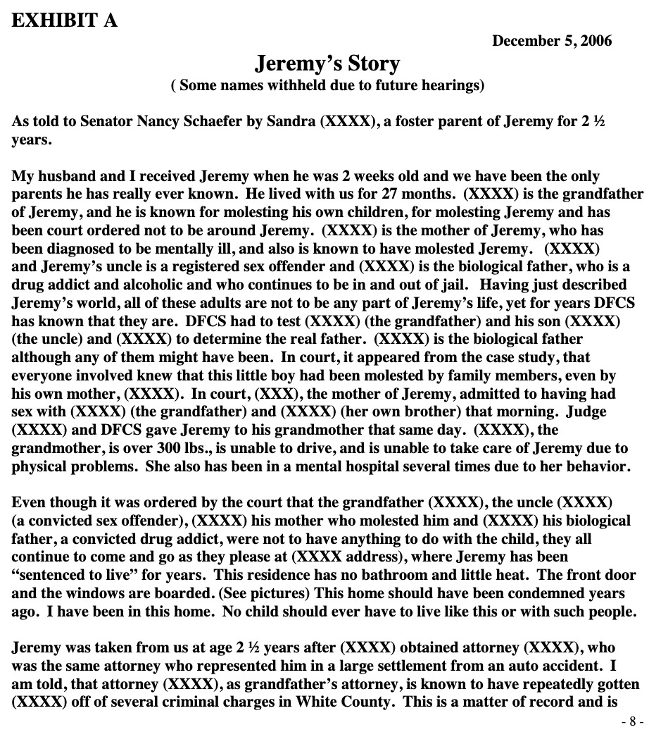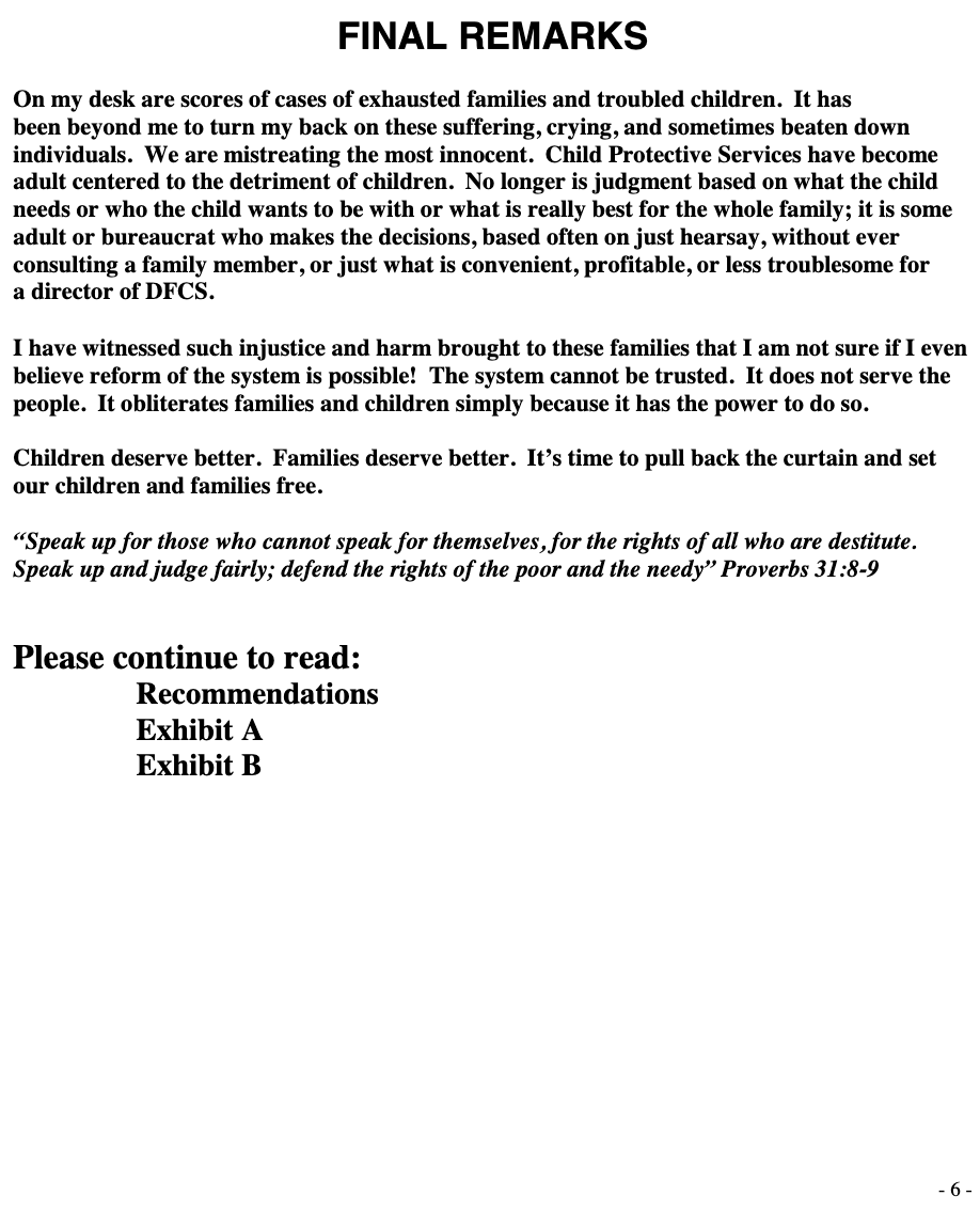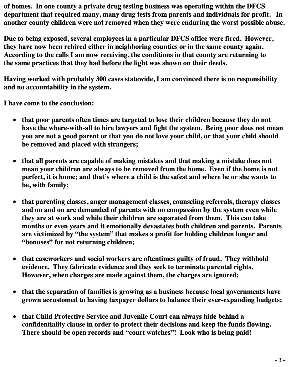 See References below for Sen. Nancy’s report, "The Corrupt Business of Child Protective Services".