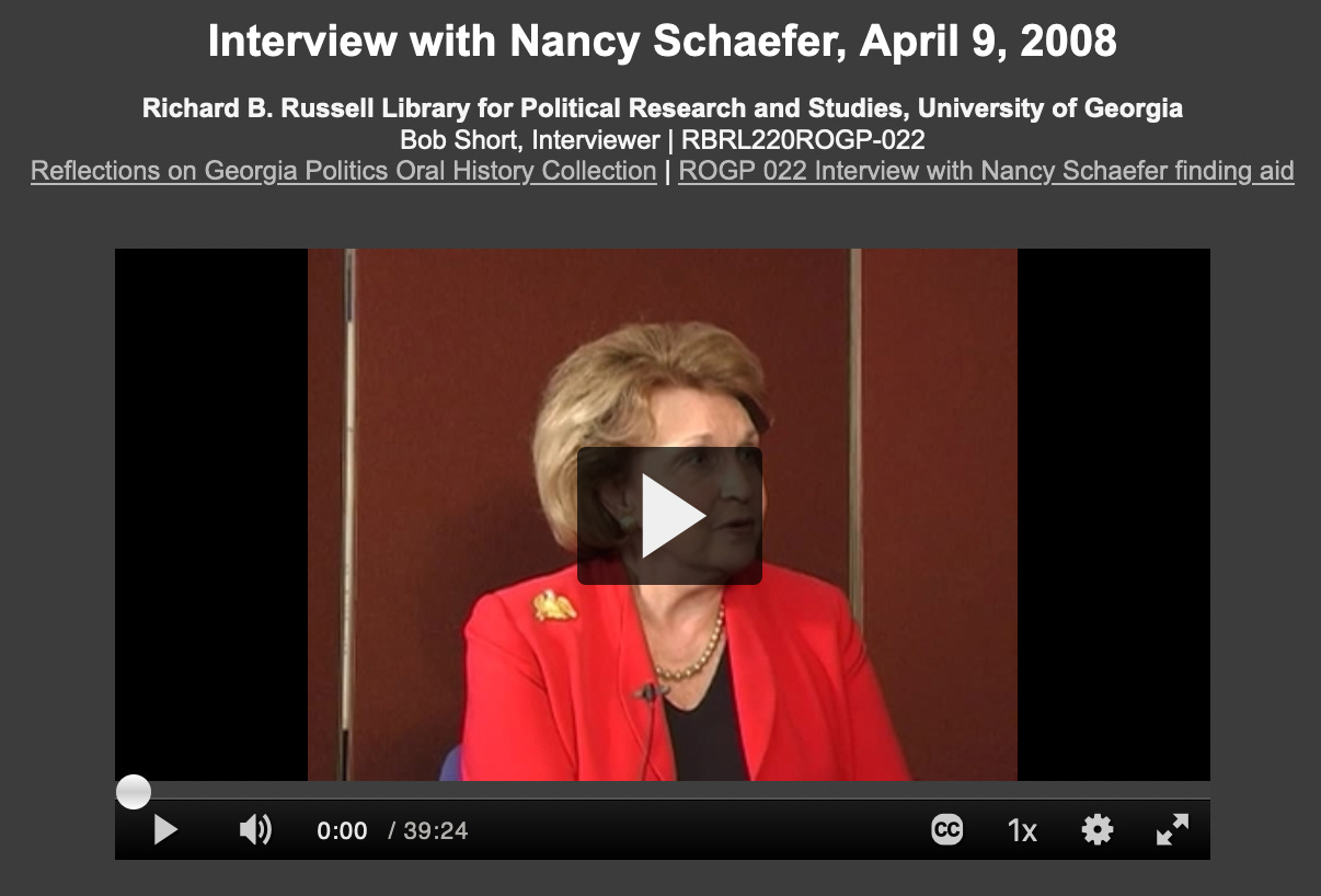Nancy Schaefer was a Georgia Senator from 2004 to 2008. Here is an interview with her, along with the content:
