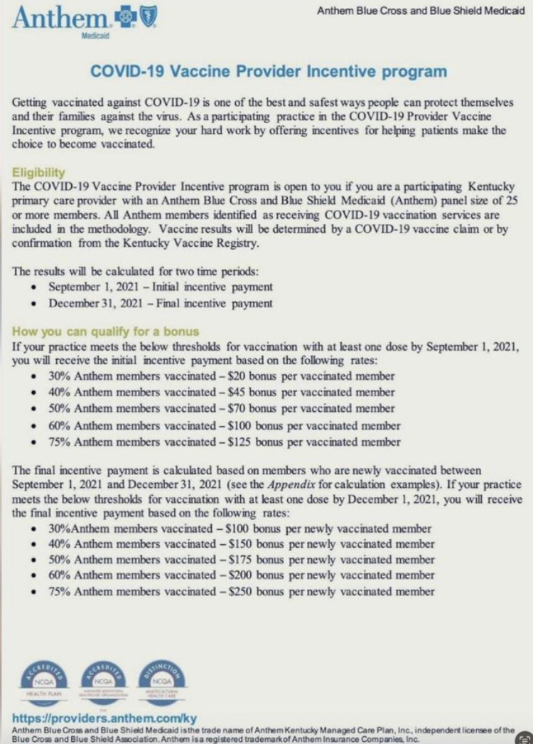 It appears that for the initial vax bioweapon, your Kentucky doctor (who takes Blue Cross insurance) was standing in line for a cash payment.